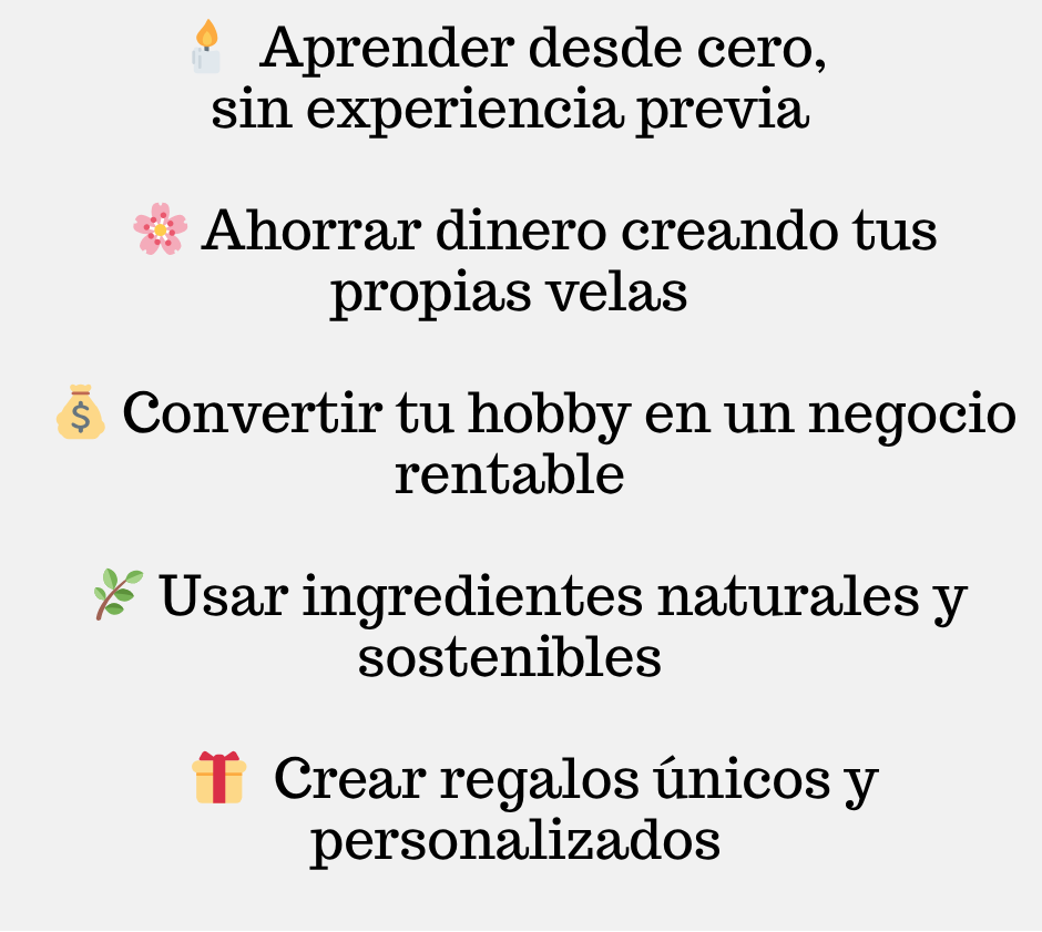 El ebook está diseñado no solo para que aprendas a hacer velas de soja aromáticas, sino también para crear una pequeña línea artesanal y empezar a generar ingresos con tus propias creaciones.