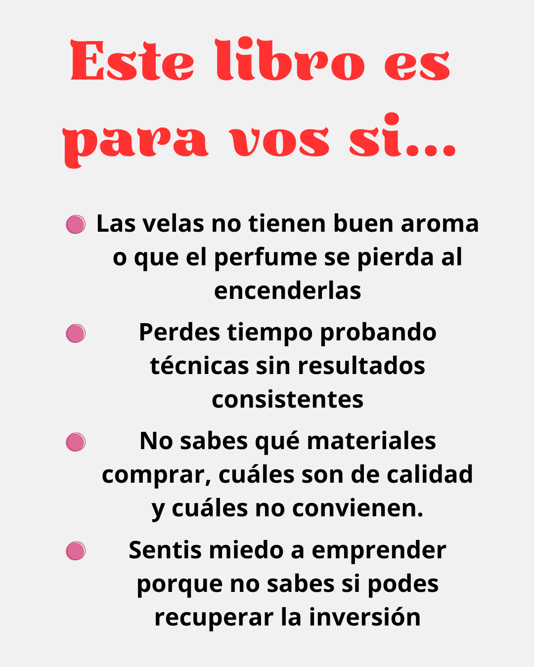 No. El ebook está pensado para principiantes. Te explico cada paso de forma clara y sencilla, desde los materiales que necesitás hasta cómo lograr tus primeras velas listas para vender. Vas a aprender todo desde cero, incluso si nunca hiciste una vela antes.